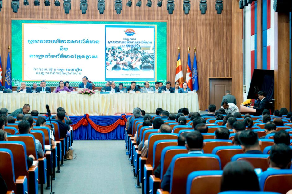 (ភ្នំពេញ)៖ ឯកឧត្តម ស្លេះ អាល់ហ្វីន អនុរដ្ឋលេខាធិការក្រសួងព័ត៌មាន ធ្វើបទបង្ហាញពីស្ថានភាពសេរីភាពសារព័ត៌មាន អញ្ជើញធ្វើស្តីពីស្ថានភាពសេរីភាពសារព័ត៌មាននៅកម្ពុជា