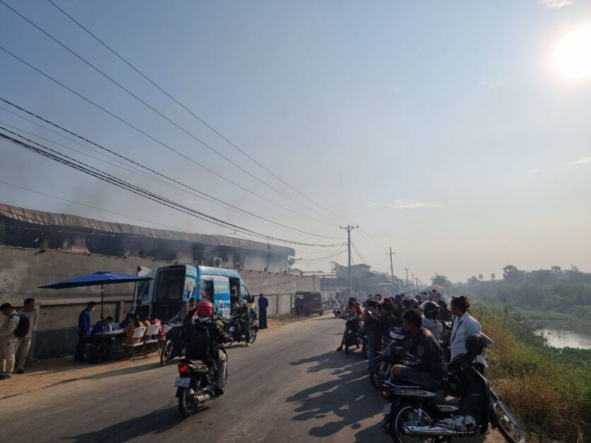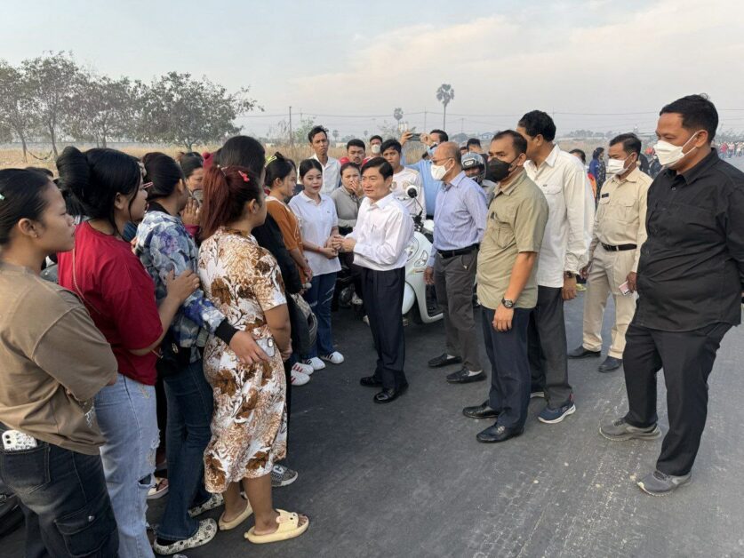(ភ្នំពេញ)៖ នាព្រឹកថ្ងៃពុធ ទី១២ ខែកុម្ភៈ ឆ្នាំ២០២៥នេះ ឯកឧត្តម ហេង សួរ រដ្ឋមន្រ្តីក្រសួងការងារ និងបណ្តុះបណ្តាលវិជ្ជាជីវៈ បានចុះជួបបងប្អូនកម្មករនិយោជិត និងពិនិត្យមើលស្ថានភាព រោងចក្រ ហ្វ័រម៉ាត (ខេមបូឌា) ខូ អិលធីឌី (FOREMART (CAMBODIA) CO., LTD.) ដែលត្រូវបានអគ្គិភ័យឆាបឆេះ កាលពីល្ងាច ថ្ងៃអង្គារ ទី១១ ខែកុម្ភៈ ឆ្នាំ២០២៥ វេលាម៉ោង ១៨:៣០នាទី។