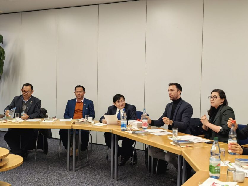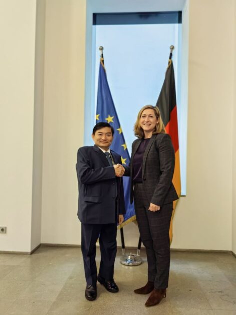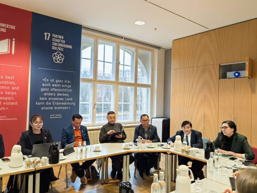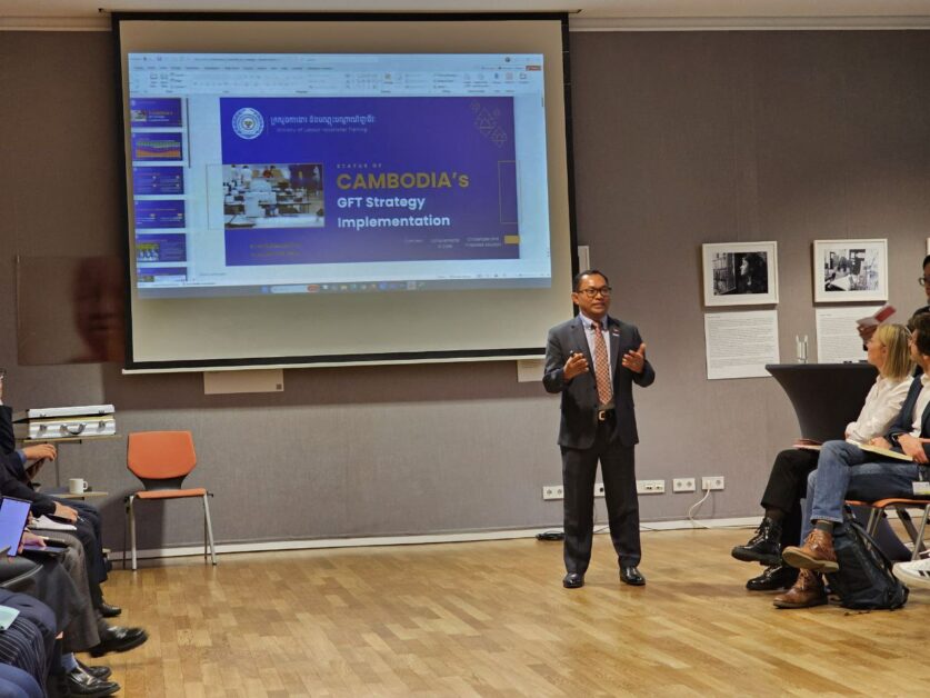តបតាមការអញ្ជើញរបស់ទីភ្នាក់ងារសហប្រតិបត្តិការអាល្លីម៉ង់ (GIZ) ឯកឧត្តម ហេង សួរ រដ្ឋមន្ត្រីក្រសួងការងារ និងបណ្តុះបណ្តាលវិជ្ជាជីវៈ បានដឹកនាំគណៈប្រតិភូអន្តរក្រសួងកម្ពុជាទៅបំពេញទស្សនកិច្ចនៅសាធារណរដ្ឋសហព័ន្ធអាល្លឺម៉ង់ ចាប់ពីថ្ងៃទី១៣ រហូតដល់ថ្ងៃទី១៧ ខែមករា ឆ្នាំ២០២៥។ ដំណើរទស្សនកិច្ចនេះ គឺដើម្បីស្វែងយល់អំពីគោលនយោបាយ និងច្បាប់នានាពាក់ព័ន្ធនឹងវិស័យវាយនភណ្ឌ កាត់ដេរ ស្បែកជើង និងផលិតផលធ្វើដំណើរនិងកាបូប នៅក្នុងសហគមន៍អឺរ៉ុប និងអាល្លឺម៉ង់។