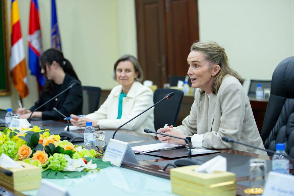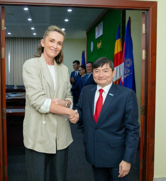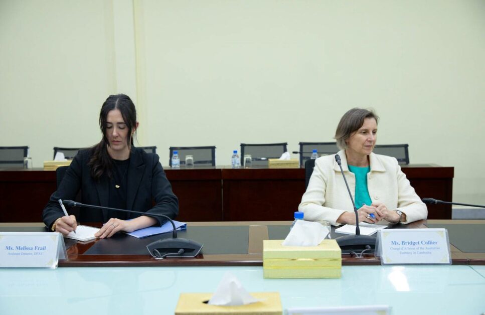 នៅរសៀលថ្ងៃអង្គារ ទី១៧ ខែមីនា ឆ្នាំ២០២៦ នាទីស្តីការក្រសួង ឯកឧត្តម ហេង សួរ រដ្ឋមន្ត្រីក្រសួងការងារ និងបណ្ដុះបណ្ដាលវិជ្ជាជីវៈ បានទទួលជួបសម្ដែងការគួរសម និងពិភាក្សាការងារជាមួយលោកស្រី ប្រីជែត ខូលៀរ (Bridget Collier) ភារធារីស្ថានទូតអូស្ត្រាលីប្រចាំកម្ពុជា និងលោកស្រី ធេនណាល អូហ្សេនណេស៊ី (Tennealle O’Shannessy) នាយិការប្រតិបត្តិនៃ IDP Education និងជាអ្នកធុរកិច្ចឆ្នើមអូស្ត្រាលីប្រចាំនៅកម្ពុជា ដើម្បីផ្លាស់ប្តូរមតិយោបល់ពីការពង្រឹងកិច្ចសហប្រតិបត្តិការរវាងកម្ពុជា និងអូស្ត្រាលីក្នុងការអភិវឌ្ឍជំនាញវិជ្ជាជីវៈ (TVET) ការបណ្តុះបណ្តាលភាសាអង់គ្លេស និងការជំរុញទំនាក់ទំនងធុរកិច្ចរវាងប្រទេសទាំងពីរ។