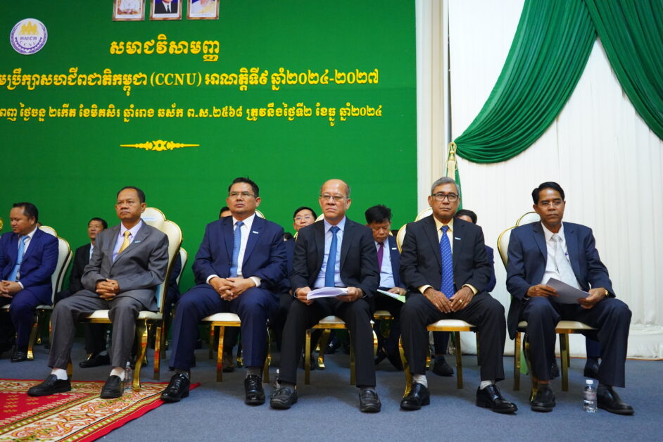 ឯកឧត្តម ហេង សួរ រដ្ឋមន្រ្តីក្រសួងការងារ និងបណ្តុះបណ្តាលវិជ្ជាជីវៈ បានអញ្ជើញជាអធិបតីក្នុងពិធីបិទសមាជវិសាមញ្ញរបស់ក្រុមប្រឹក្សាសហជីពជាតិកម្ពុជា (CCNU) អាណត្តិទី៩ ២០២៤-២០២៧ ដោយមានការចូលរួមពីតំណាងអង្គការអន្តរជាតិខាងការងារ (ILO) និងតំណាងនៃអង្គការ សមាគមនិយោជក សហភាពសហជីព, សហព័ន្ធសហជីព និងសហជីពមូលដ្ឋាន សរុបប្រមាណជា៣០០នាក់។