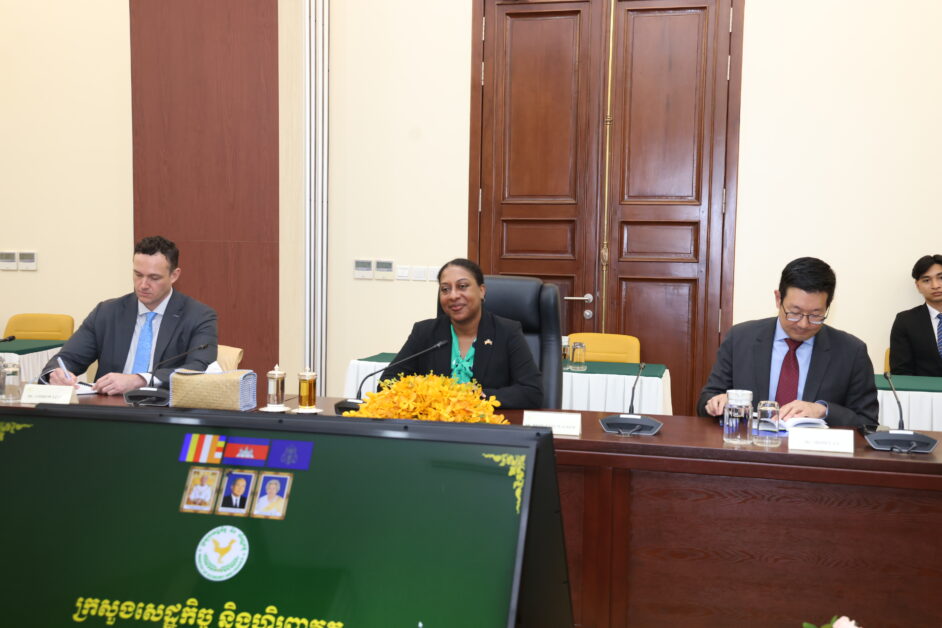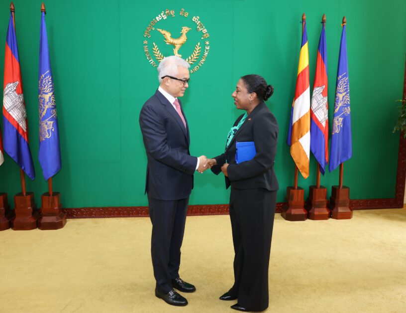 ឯកឧត្តម អគ្គបណ្ឌិតសភាចារ្យ អូន ព័ន្ធមុនីរ័ត្ន ឧបនាយករដ្ឋមន្រ្តី រដ្ឋមន្រ្តីក្រសួងសេដ្ឋកិច្ច និងហិរញ្ញវត្ថុ ទទួលជួបពិភាក្សាការងារជាមួយលោកស្រី Bridgette Walker ភារៈធារីស្តីទីនៃស្ថានទូតសហរដ្ឋអាម៉េរិក ប្រចាំព្រះរាជាណាចក្រកម្ពុជា