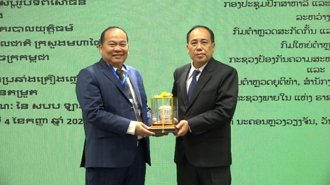 ឯកឧត្តម ឧត្តមសេនីយ៍ឯក ឃឹង សារ៉ាត់ ប្រធានមន្ទីរប្រឆាំងបទល្មើសគ្រឿងញៀន ដឹកនាំគណៈប្រតិភូនាយនគបាលកម្ពុជា ចូលរួមប្រជុំពិភាក្សាផ្លាស់ប្តូរបទពិសោធន៍ការងារជាមួយនាយកដ្ឋានបង្ការ ទប់ស្កាត់និងប្រឆាំងគ្រឿងញៀន នៃអគ្គនាយកដ្ឋានតម្រួត ក្រសួងសន្តិសុខសាធារណៈឡាវ