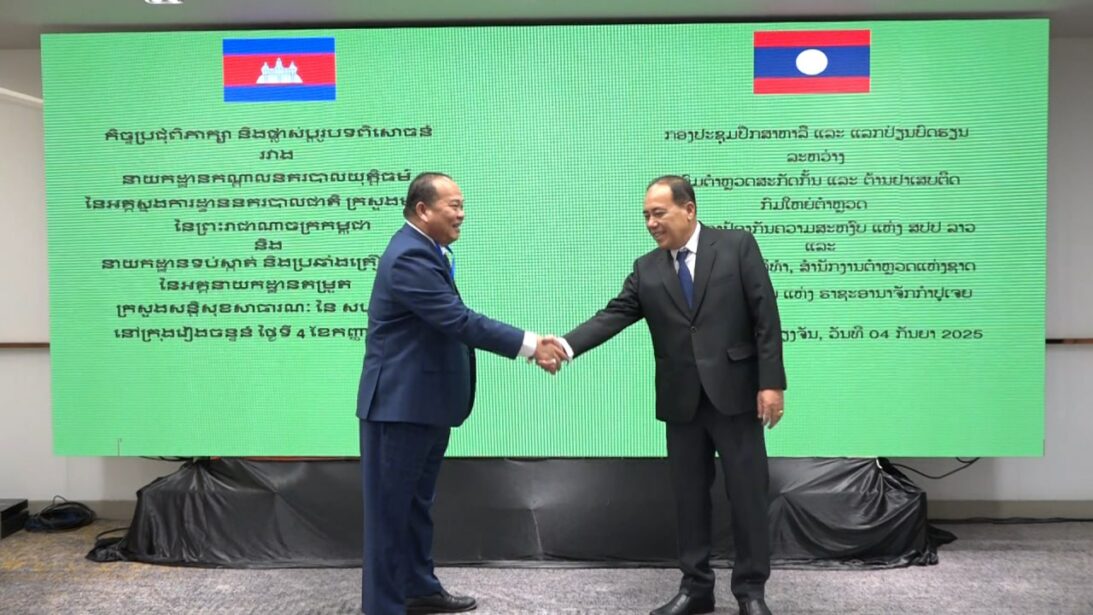 ទីក្រុងវៀងចន្ទន៍៖ ដោយមានការអនុញ្ញាតដ៏ខ្ពង់ខ្ពស់ពីឯកឧត្តម នាយឧត្តមសេនីយ៍ ស ថេត អគ្គស្នងការនគរបាលជាតិ ឯកឧត្តម ឧត្តមសេនីយ៍ឯក ឃឹង សារ៉ាត់ នាយកមន្ទីរប្រឆាំងបទល្មើសគ្រឿងញៀន នៃអគ្គស្នងការនគរបាលជាតិ ក្រសួងមហាផ្ទៃកម្ពុជា ដឹកនាំគណៈប្រតិភូ ចូលរួមប្រជុំពិភាក្សាផ្លាស់ប្តូរបទពិសោធន៍ការងារទ្វេរភាគីជាមួយ ភាគីសាធារណរដ្ឋប្រជាធិបតេយ្យប្រជាមានិតឡាវ ដឹកនាំដោយ លោកវរេសនីយ៍ឯក Phoxay Sayyavong ប្រធាននាយកដ្ឋានបង្ការ ទប់ស្កាត់និងប្រឆាំងគ្រឿងញៀន នៃអគ្គនាយកដ្ឋានតម្រួត ក្រសួងសន្តិសុខសាធារណៈឡាវ កាលពីព្រឹកថ្ងៃទី៤ ខែកញ្ញា ឆ្នាំ២០២៥ នៅសណ្ឋាគារ Loa Plaza ទីក្រុងវៀងចន្ទន៍ សារធារណរដ្ឋប្រជាធិបតេយ្យ