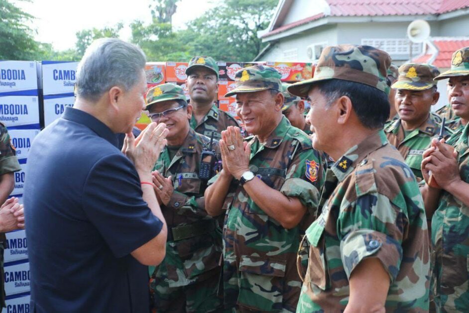 ខេត្តឧត្តរមានជ័យ៖ នាព្រឹកថ្ងៃសុក្រ ទី២០ ខែមិថុនា ឆ្នាំ២០២៥ ឯកឧត្តម ស៊ុន ចាន់ថុល ឧបនាយករដ្ឋមន្ត្រី អនុប្រធានទី១ ក្រុមប្រឹក្សាអភិវឌ្ឍន៍កម្ពុជា បានដឹកនាំគណៈប្រតិភូក្រុមប្រឹក្សាអភិវឌ្ឍន៍កម្ពុជាអញ្ជើញចុះជួបសំណេះសំណាលសួរសុខទុក្ខ និងប្រគល់ថវិកា ព្រមទាំងសម្ភារៈ ជូនដល់នាយទាហាន នាយទាហានរង ពលទាហាន និងកងកម្លាំងប្រដាប់អាវុធ ដែលជាកងទ័ពឈរជើងជួរមុខតាមបណ្តោយព្រំដែនកម្ពុជា-ថៃ នៅទីបញ្ជាការទិសទី៣ យោធភូមិភាគទី៤ ខេត្តឧត្តរមានជ័យ។ ពិធីនាឱកាសនេះ មានការអញ្ជើញទទួលពី ឯកឧត្តមឧត្តមសេនីយ៍ឯក កែវ ធី មេបញ្ជាការរងកងទ័ពជើងគោក និងជាមេបញ្ជាការកងពលធំអន្តរាគមន៍លេខ២ និងឯកឧត្តម មាន ចាន់យ៉ាដា អភិបាលនៃគណៈអភិបាលខេត្តឧត្តរមានជ័យ។