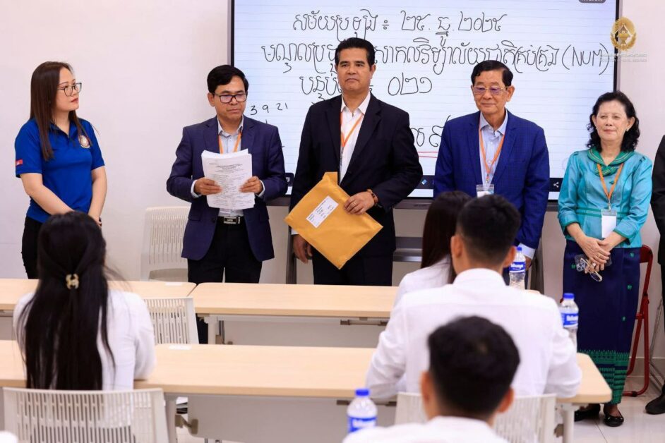 ឯកឧត្តម ហ៊ុន ម៉ានី ឧបនាយករដ្ឋមន្ត្រី រដ្ឋមន្ត្រីក្រសួងមុខងារសាធារណៈ និងជាប្រធានគណៈកម្មការរៀបចំការប្រឡងប្រជែង បានអញ្ជើញកាត់វិញ្ញាសារជានិមិត្តរូប សម្រាប់ការប្រឡងប្រជែងជ្រើសរើសសិស្សមន្ត្រីក្រមការ ជំនាន់ទី១២ លើវិញ្ញាសាសរសេរលើកទី១ នៅសាកលវិទ្យាល័យភូមិន្ទនីតិសាស្ត្រនិងវិទ្យាសាស្ត្រសេដ្ឋកិច្ច (RULE) សម្រាប់ការប្រឡងប្រជែងជ្រើសរើសសិស្សមន្ត្រីក្រមការ ជំនាន់ទី១២ នៅរសៀលថ្ងៃទី ២៥ ខែធ្នូ ឆ្នាំ២០២៥។