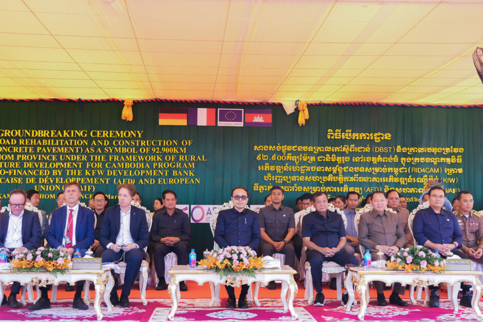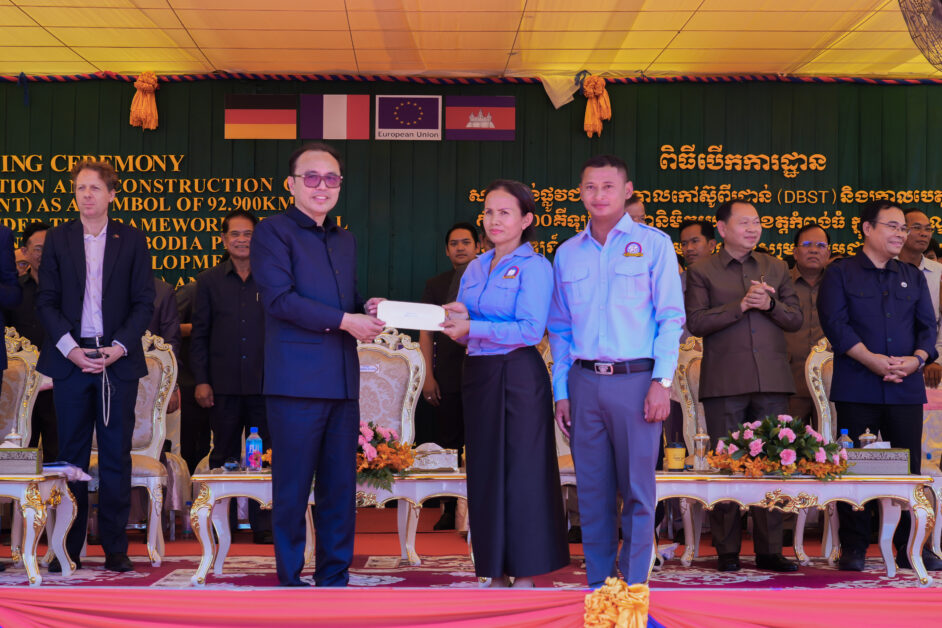 ក្នុងឱកាសនេះដែរ ឯកឧត្តម Igor DRIESMANS ឯកអគ្គរដ្ឋទូតសហភាពអឺរ៉ុប បានវាយតម្លៃខ្ពស់ ចំពោះភាពជាដៃគូដ៏រឹងមាំនិងកិច្ចសហការជិតស្និទ្ធរវាងសហភាពអឺរ៉ុបជាមួយរាជរដ្ឋាភិបាលកម្ពុជា ក្រោមគំនិត ផ្ដួចផ្ដើមរបស់សហគមន៍អឺរ៉ុប និងរដ្ឋជាសមាជិកអឺរ៉ុប ជាពិសេសប្រទេសបារាំង និងប្រទេសអាល្លឺម៉ង់ ក្នុងកិច្ចខិតខំប្រឹងប្រែងរួមគ្នា ជំរុញការលើកកម្ពស់សេដ្ឋកិច្ចនៅតាមទីជនបទដោះស្រាយបញ្ហាប្រឈមនៅតាមសហគមន៍ កាត់បន្ថយភាពក្រីក្រ ទប់ស្កាត់ផលប៉ះពាល់នៃការប្រែប្រួលអាកាសធាតុ លើកកម្ពស់សុខភាព និងគាំទ្រដល់ការធ្វើសមាហរណកម្មកម្ពុជាទៅក្នុងតំបន់ តាមរយៈគម្រោងហេដ្ឋារចនាសម្ព័ន្ធដឹកជញ្ជូន។ ឯកឧត្តម Jacques PELLET ឯកអគ្គរដ្ឋទូតបារាំង បានបន្ថែមថា គម្រោងនេះមិនមែនគ្រាន់តែជាគម្រោងសាងសង់ផ្លូវប៉ុណ្ណោះទេ ប៉ុន្តែគឺជាការវិនិយោគដ៏សំខាន់ទៅលើមនុស្ស ដោយកាត់បន្ថយភាពដាច់ឆ្ងាយនៃសហគមន៍នីមួយៗ កាត់បន្ថយពេលវេលានិងចំណាយធ្វើដំណើរ ព្រមទាំងបង្កើនលទ្ធភាពទទួលបានសេវាថែទាំសុខភាពការអប់រំ និងឱកាសសេដ្ឋកិច្ច ដែលជាកត្តាចាំបាច់សម្រាប់ជីវភាពរបស់ប្រជាជនក្នុងមូលដ្ឋាន។ ជាមួយគ្នានេះ ឯកឧត្តម Stefan MESSERERឯកអគ្គរដ្ឋទូតអាល្លឺម៉ង់ បានគូសរំលេចនូវសមិទ្ធផលសំខាន់ៗនៃកិច្ចសហប្រតិបតិ្តការកម្ពុជា–អាល្លឺម៉ង ដោយកន្លងមកប្រទេសអាល្លឺម៉ង់បានវិនិយោគសរុបប្រមាណ ៧៥,៥១៦លាន អឺរ៉ូ និង ៣១លាន Deutsche Mark (DM) ក្នុងការអភិវឌ្ឍហេដ្ឋារចនាសម្ព័ន្ធជនបទនៅព្រះរាជាណាចក្រកម្ពុជា។ ឯកឧត្តមឯកអគ្គរដ្ឋទូតទាំងបីរូប បានបង្ហាញនូវឆន្ទៈមោះមុតក្នុងការសហការយ៉ាងជិតស្និទ្ធជាមួយរាជរដ្ឋាភិបាលកម្ពុជា ដើម្បីបន្តគាំទ្រដល់ការអភិវឌ្ឍ និងការលើកកម្ពស់ជីវភាពរបស់ប្រជាជនកម្ពុជា។