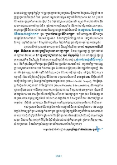 ការទទួលបាន ជ័យលាភីពានរង្វាន់មាស នៃពានរង្វាន់ឌីជីថលអាស៊ានឆ្នាំ២០២៦ នេះ បានឆ្លុះបញ្ចាំងពីការប្តេជ្ញាចិត្តរបស់រាជរដ្ឋាភិបាលកម្ពុជា ក្នុងការធ្វើបរិវត្តកម្មឌីជីថលក្នុងវិស័យសេវាសាធារណៈតាមរយៈការធ្វើនវានុវត្តន៍ឌីជីថល ក្នុងគោលដៅពង្រឹងគុណភាពនៃការផ្តល់សេវា និងបង្កើនតម្លាភាពក្នុងសង្គម និងជាសក្ខីភាពបញ្ជាក់ពីកិច្ចខិតខំប្រឹងប្រែងរបស់រាជរដ្ឋាភិបាលកម្ពុជា ក្នុងការអភិវឌ្ឍប្រទេស, គាំពារប្រជាជន, និងលើកកម្ពស់ផលប្រយោជន៍សាធារណៈយ៉ាងពិតប្រាកដ ៕