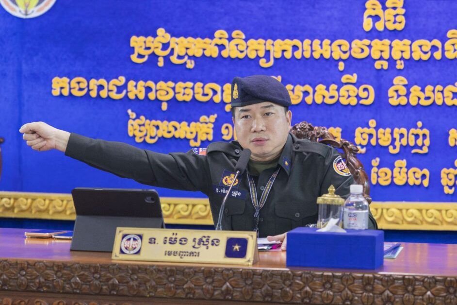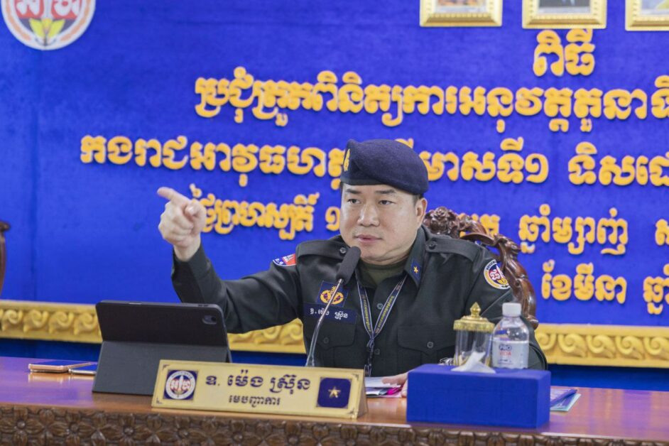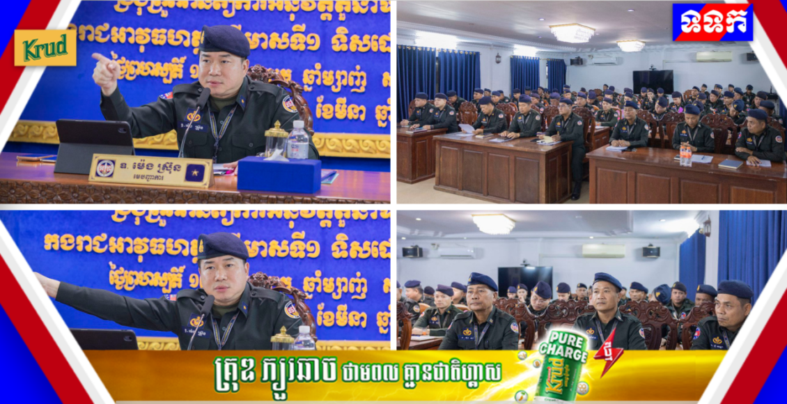 កំពង់ស្ពឺ៖ នាព្រឹកថ្ងៃទី១៩ ខែមីនា ឆ្នាំ២០២៦ លោកឧត្តមសេនីយ៍ត្រី ម៉េង ស្រ៊ុន មេបញ្ជាការ កងរាជអាវុធហត្ថខេត្តកំពង់ស្ពឺ បានអញ្ជើញអធិបតីដឹកនាំកិច្ចប្រជុំបូកសរុបលទ្ធផលការងារប្រចាំត្រីទី០១ លើកទិសដៅការងារត្រីទី០២ និងបូកសរុបលទ្ធផលការងារប្រចាំខែមីនា លើកទិសដៅការងារបន្តសម្រាប់ ខែមេសា ឆ្នាំ២០២៦ ស្ថិតនៅសាលប្រជុំ បញ្ជាការដ្ឋាន កងរាជអាវុធហត្ថខេត្តកំពង់ស្ពឺ។ ក្នុង​កិច្ច​កិច្ចប្រជុំនេះ មានការចូលរួមពីសំណាក់ លោកមេបញ្ជាការរង, សេនាធិការរង, ប្រធាន-អនុប្រធានមន្ទីរ, នាយ-នាយរgការិយាល័យ, មេបញ្ជាការកងអនុសេនាធំ, មេបញ្ជាការក្រុង-ស្រុក ប្រធានស្នាក់ការ ព្រមទាំងនាយទាហាន នាយទាហានរង ចូលរួមផងដែរ។