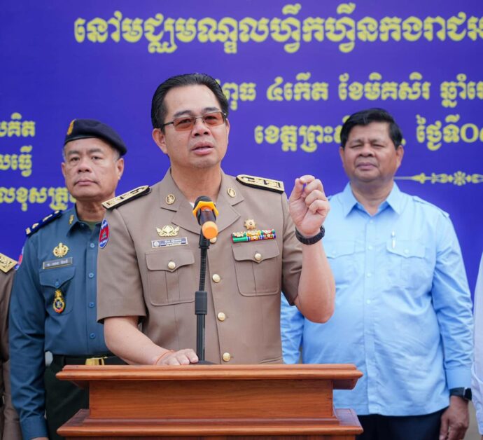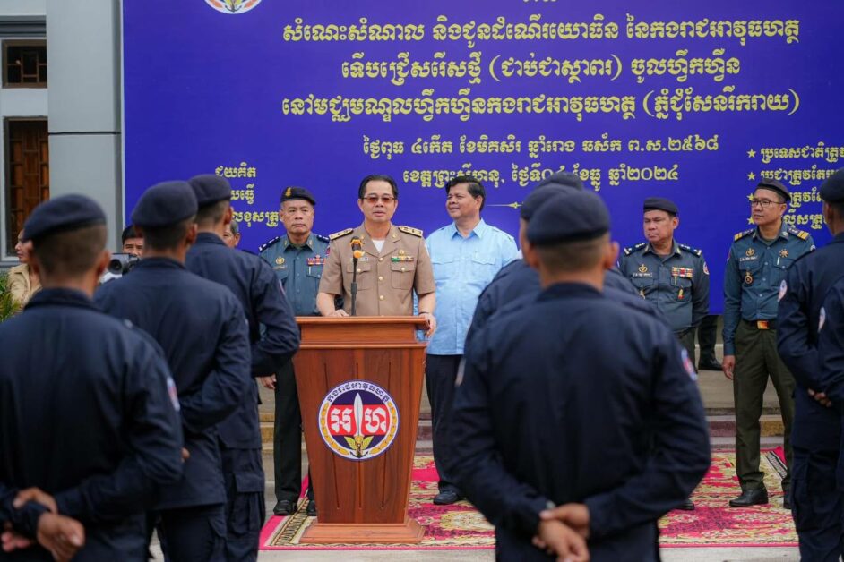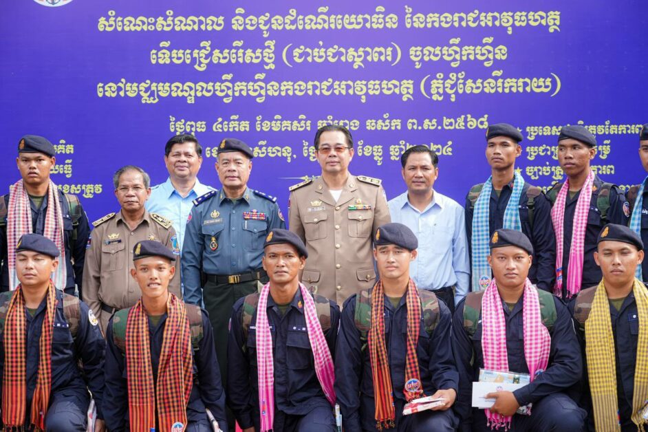 ព្រឹកថ្ងៃទី៤ ខែធ្នូ ឆ្នាំ២០២៤ ឯកឧត្តម ម៉ាង ស៊ីណេត អភិបាល នៃគណៈអភិបាលខេត្តព្រះសីហនុ អញ្ជើញសំណេះសំណាល និងជូនដំណើរយោធិន នៃកងរាជអាវុធហត្ថទើបជ្រើសរើសថ្មី (ជាប់ជាស្ថាពរ) ដើម្បីចូលហ្វឹក ហ្វឺននៅមជ្ឈមណ្ឌលហ្វឹកហ្វឺនកងរាជ អាវុធហត្ថ (ភ្នំជុំសែនរីករាយ) ពិធីសំណេះ សំណាលនេះ ធ្វើនៅទីបញ្ជាការកងរាជ អាវុធហត្ថខេត្តព្រះសីហនុ។