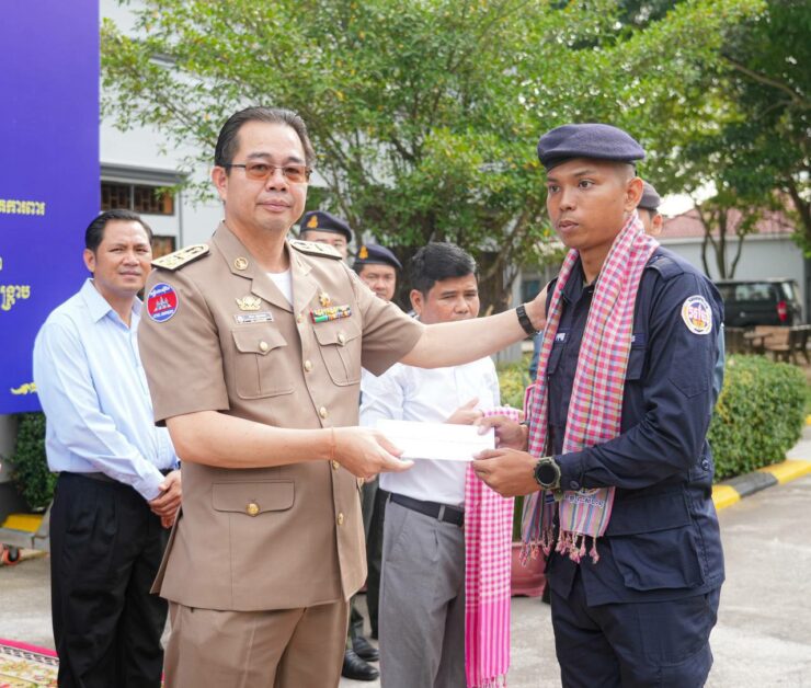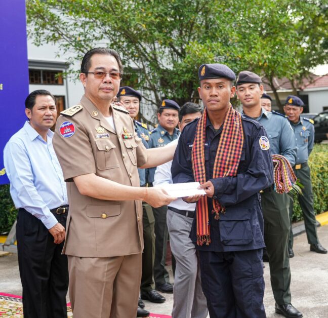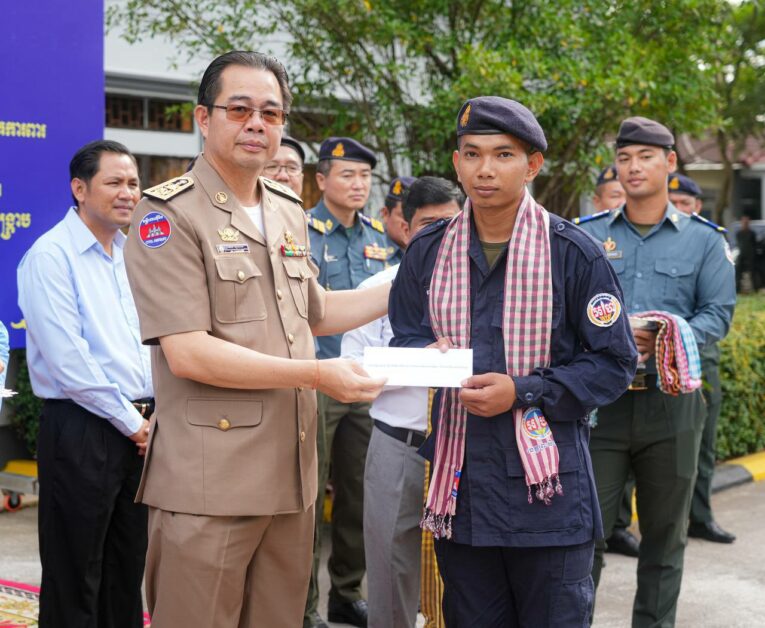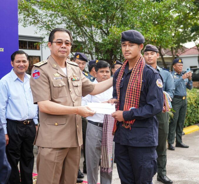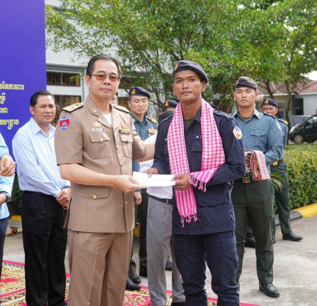 ក្នុងឱកាសនោះ ឯកឧត្តមអភិបាលខេត្ត ក៏បាននាំយកថវិកាសម្តេចមហាបវរធិបតី ហ៊ុន ម៉ាណែត នាយករដ្ឋមន្ត្រីកម្ពុជា និងលោកជំទាវបណ្ឌិត ឧបត្ថម្ភជូនកងរាជអាវុធហត្ថថ្មីចំនួន ១៩នាក់ ក្នុងម្នាក់ទទួលបានថវិកា ២០ម៉ឺនរៀល៕