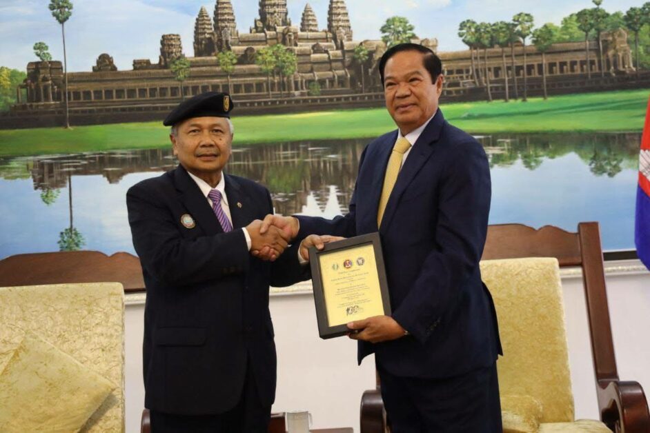 នៅថ្ងៃសៅរ៍ ទី០៨ ខែមីនា ឆ្នាំ២០២៥នេះ ឯកឧត្តម នាយឧត្តមសេនីយ៍ កិត្តិសង្គហបណ្ឌិត គន់ គីម ទេសរដ្ឋមន្រ្ដី អនុប្រធាន និងជាអគ្គលេខាធិការសមាគមអតីតយុទ្ធជនកម្ពុជា បានអនុញ្ញាតជូនគណៈប្រតិភូសមាគមអតីតយុទ្ធជនកងទ័ពម៉ាឡេស៊ី ដែលដឹកនាំដោយ ឯកឧត្តម Sharuddin bin Hj Omar ប្រធានសមាគមអតីតយុទ្ធជនកងទ័ពម៉ាឡេស៊ី នៅទីស្នាក់ការកណ្ដាលសមាគមអតីតយុទ្ធជនកម្ពុជា ចូលជួបសម្តែងការគួរសម និងពិភាក្សាការងារ ក្នុងឱកាសបំពេញទស្សនកិច្ចនៅព្រះរាជាណាចក្រកម្ពុជា។