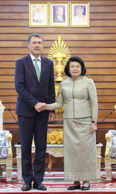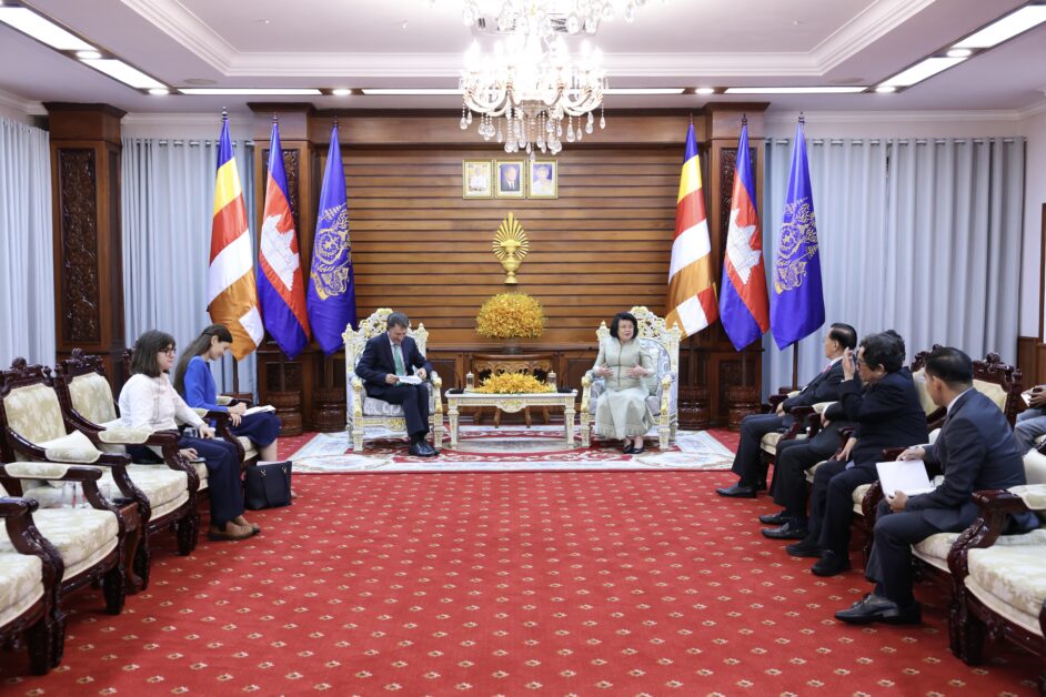 ឯកឧត្តមឯកអគ្គរដ្ឋទូត បានថ្លែងកោតសរសើរពីការរីកចម្រើនរបស់កម្ពុជា។ ប្រទេសបារំាងនឹងបន្តគំាទ្រកម្ពុជា លើវិស័យសុខាភិបាល សង្គមកិច្ច ទឹកស្អាត អប់រំ ការបណ្តុះបណ្តាល វប្បធម៌ ជាដើម។ ឯកឧត្តមបានបញ្ជាក់ថា កម្ពុជាជាប្រទេសមួយដែលនិស្សិតបារំាង ពេញចិត្តមកបម្រើការងារស្ម័គ្រចិត្ត។ ជាមួយគ្នានេះ ឯកឧត្តមឯកអគ្គរដ្ឋទូត ក៏បានគោរពអញ្ជើញសម្តេចប្រធានរដ្ឋសភា ចូលរួមសន្និសីទអន្តរជាតិស្តីពីសន្តិភាព នៅប្រទេសបារំាងនាចុងឆ្នាំ២០២៥នេះ ផងដែរ។