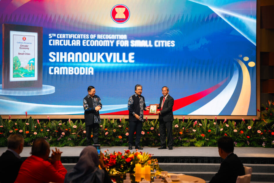 ពិធីប្រគល់ពានរង្វាន់ទីក្រុងនិរន្តរភាពបរិស្ថានអាស៊ាន និងវិញ្ញាបនបត្រទទួលស្គាល់ដីស្អាត ទឹកស្អាត និងខ្យល់ស្អាត បានប្រារព្ធធ្វើឡើង ថ្ងៃទី៣ ខែកញ្ញា ឆ្នាំ២០២៥ នៅក្នុងក្របខណ្ឌនៃកិច្ចប្រជុំរដ្ឋមន្រ្តីបរិស្ថានអាស៊ាន លើកទី១៨ នៅទីក្រុង Langkawi ប្រទេសម៉ាឡេស៊ី ក្រោមវត្តមានរបស់រដ្ឋមន្រ្តីបរិស្ថាននៃបណ្តាប្រទេសសមាជិក តំបន់នៃប្រជាជាតិអាស៊ីអាគ្នេយ៍ ក្នុងនោះគណៈប្រតិភូកម្ពុជាដឹកនាំដោយ ឯកឧត្តមបណ្ឌិត អ៊ាង សុផល្លែត រដ្ឋមន្ត្រីក្រសួងបរិស្ថាននៃព្រះរាជាណាចក្រកម្ពុជា រួមជាមួយអគ្គលេខាអាស៊ាន ផងដែរ។