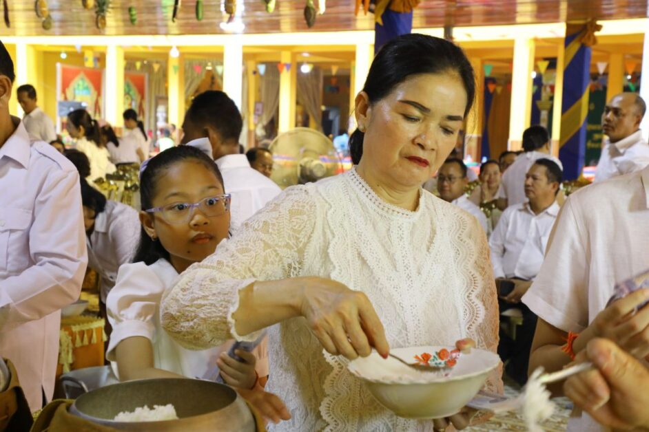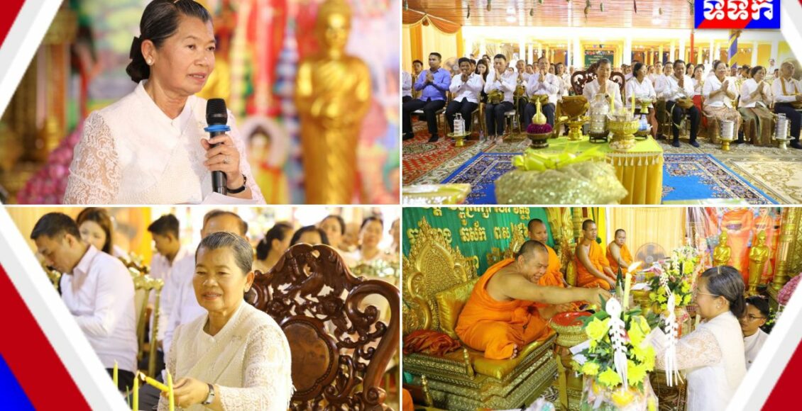 ជាមួយគ្នានោះ សម្តេចកិត្តិសង្គហបណ្ឌិត បានឧទ្ទិសនូវកុសលផលបុណ្យក្នុងឱកាសនោះ ជូនទៅដល់ដួងវិញ្ញាណក្ខន្ធបុព្វការីជន មានមាតាបិតា ជីដូនជីតា ញាតិកាទាំង៧សន្ដាន និងឥស្សរជន វីរជន យុទ្ធជន ដែលបានលះបង់ជីវិត ដើម្បីបុព្វហេតុជាតិ និងប្រជាជន សូមឱ្យដួងវិញាណក្ខន្ធអស់លោកទាំងអស់ បានទៅកាន់សុគតិភព កុំបីឃ្លៀងឃ្លាតឡើយ៕