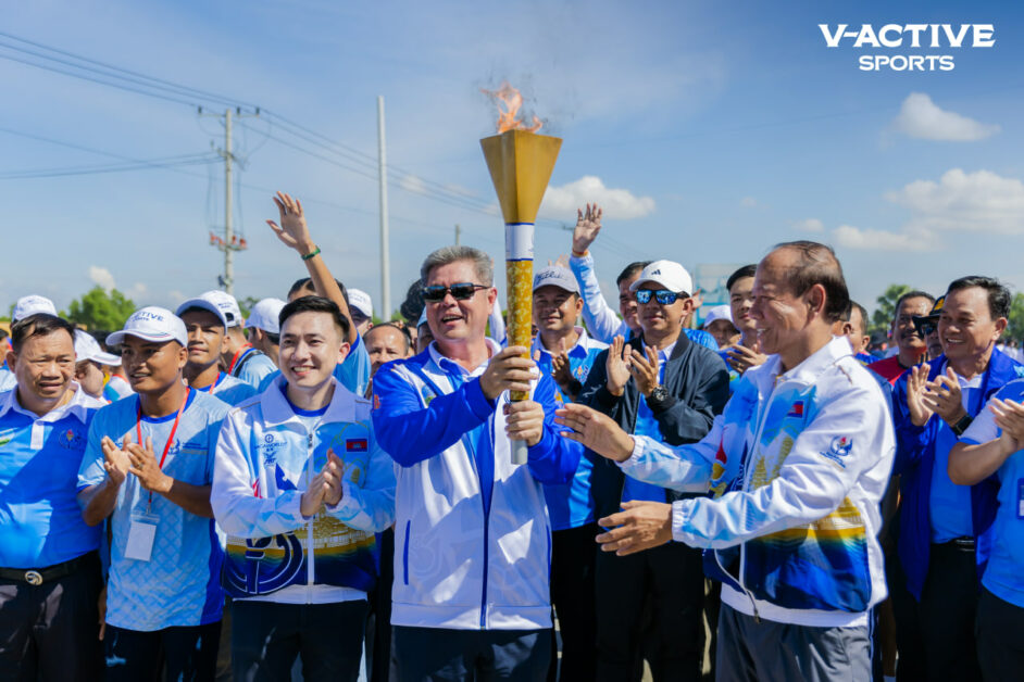 អ្នកឧកញ៉ា សំអាង វឌ្ឍនៈ តំណាង វឌ្ឍនៈ ប្រ៊ូវើរី ចូលរួមរត់ភ្លើងគប់អបអរសាទរ ពិធីបើកកីឡាជាតិលើកទី៤ និងកីឡាជាតិជនពិការលើកទី២ ឆ្នាំ២០២៤