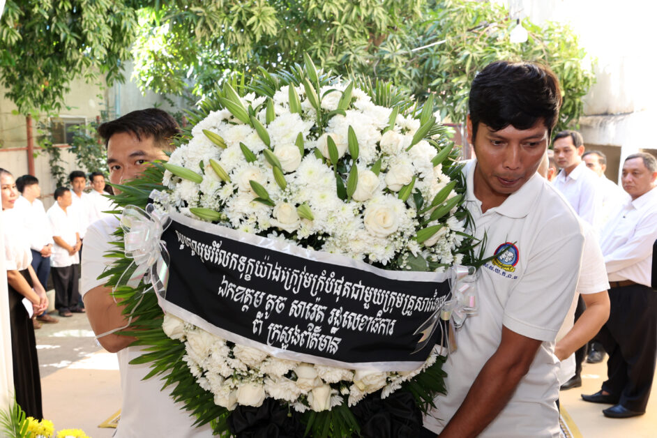 ឯកឧត្តម រដ្ឋមន្ត្រី នេត្រ ភក្ត្រា ដឹកនាំប្រតិភូក្រសួងព័ត៌មាន អញ្ជើញដាក់កម្រងផ្កាគោរពវិញ្ញាណក្ខន្ធសព ឯកឧត្តម តូច សារ៉េត រដ្ឋលេខាធិការក្រសួងព័ត៌មាន ដែលជាថ្នាក់ដឹកនាំមួយរូបដែលបានចូលរួមចំណែកក្នុងការអភិវឌ្ឍវិស័យព័ត៌មាន និងសោតទស្សន៍នៅកម្ពុជាឱ្យមានការរីកចម្រើន